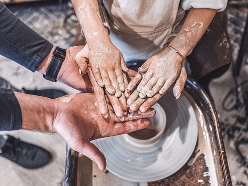 И не беспокойтесь, у вас все получится. Мастера рядом и помогают на каждом этапе; у нас понятная структура занятия и подготовленные места для работы с керамикой.